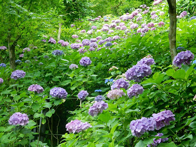 あじさい散策路の上段は、見ごろを終えつつある株も見受けられますが、まだまだ七色極楽浄土の世界。